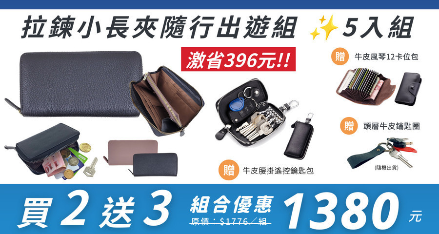 真皮小長夾,鈔票不用折平整放入;小包、口袋更好收納;手拿更省力