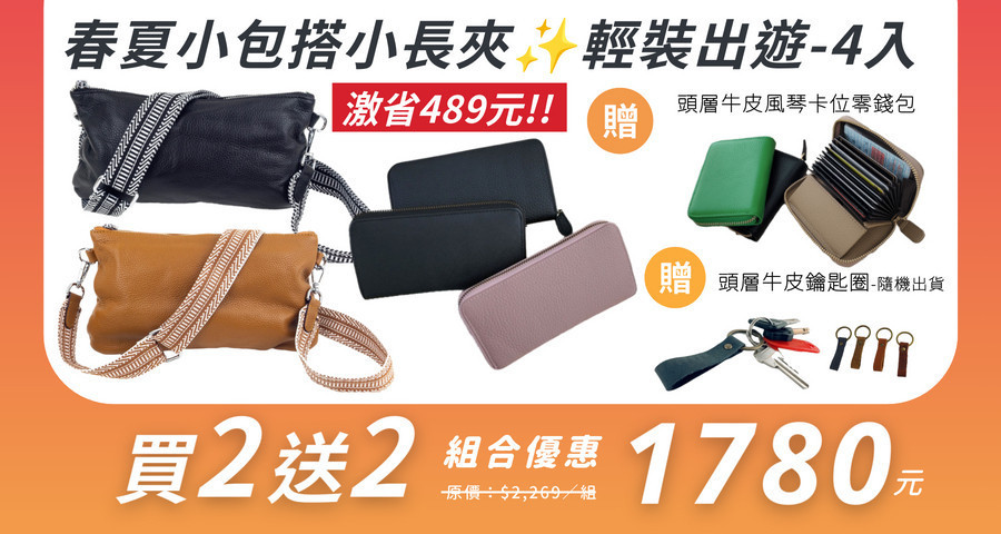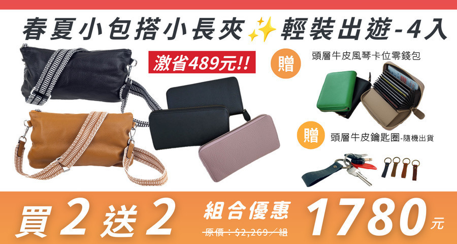 春夏小包搭小長夾,輕裝出遊-4入組;