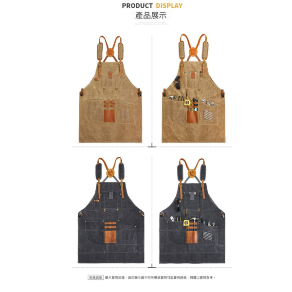 過蠟帆布配頭層牛皮防潑水多口袋工作圍裙【LC14】